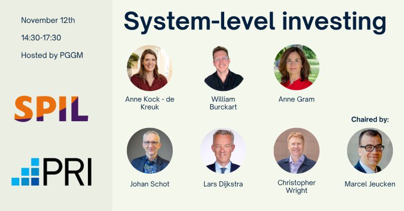 November 12: William will head to Zeist to join PGGM alongside the Sustainable Pension Investments Lab (SPIL) and the Principles for Responsible Investment (PRI) for a gathering of pension and insurance fund leaders focused on system-level investing.